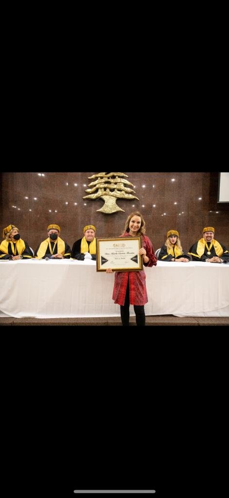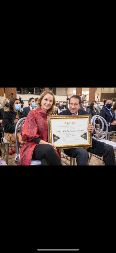Este reconocimiento se lo entregó la OMLID (Organización Mundial de Líderes), en el Centro Libanés, acompañada por su esposo Lic. Arturo Montiel Rojas.
