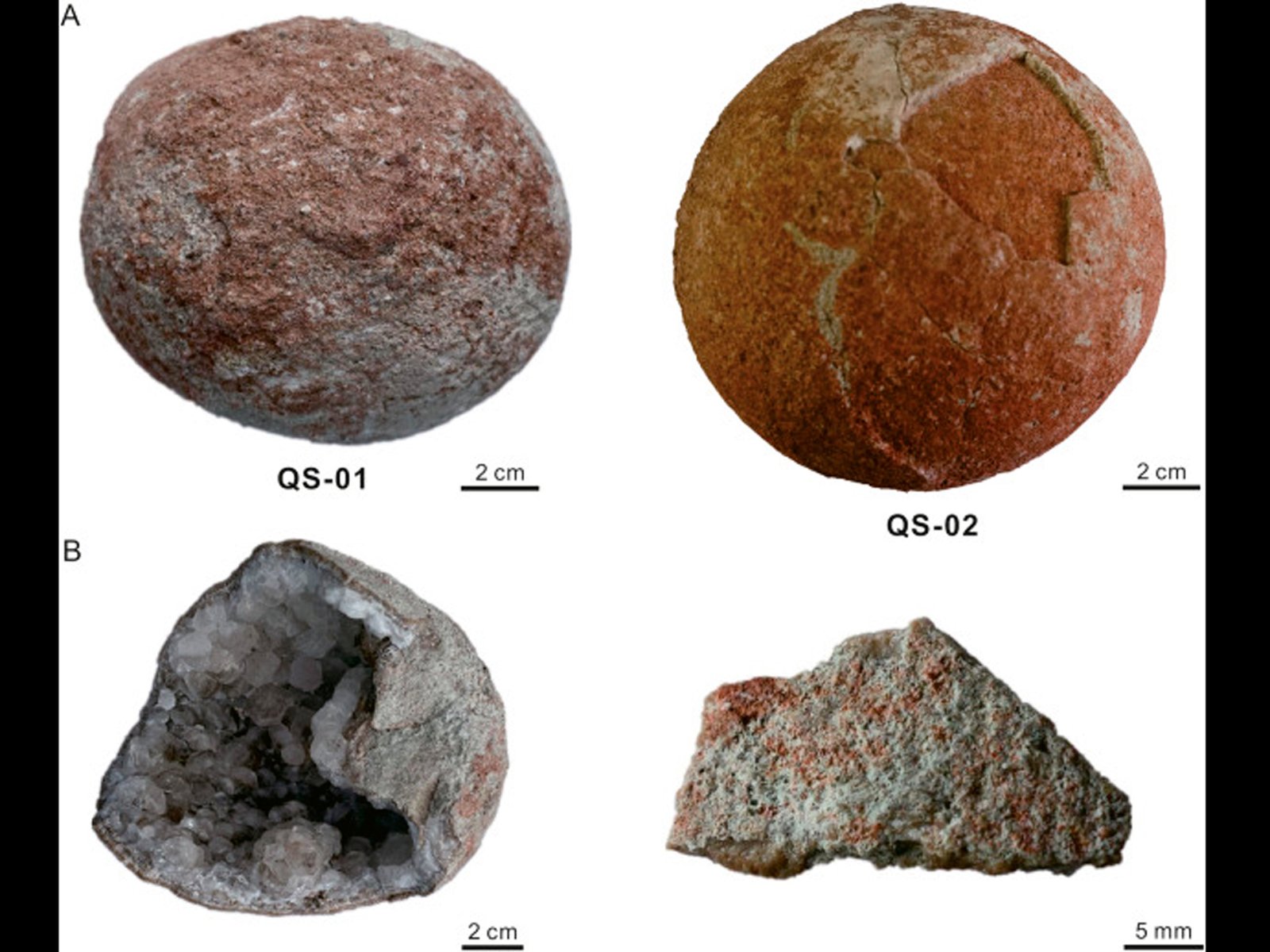 Una especie de dinosaurio desconocida hasta ahora en la China de finales del Cretácico puso huevos casi esféricos, del tamaño de un pomelo, que se han llenado de cristales en los millones de años transcurridos desde entonces